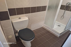 RDC : 1 chambre avec sa salle d'eau privative donnant sur un jardinet privatif, 1 placard sous escalier, 1 wc.